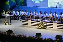 On 14 May 2008, the 1st Jas Otan Congress was held in Astana with participation of Nazarbayev.[3] In a process of preparation to the 1st Congress, Nur Otan party initiated parliamentary hearings on the discussion of the Law on State Youth Policy in the Republic of Kazakhstan, youth conferences were organized in all regions of the country to approve a list of 310 delegates to the Congress.[4]