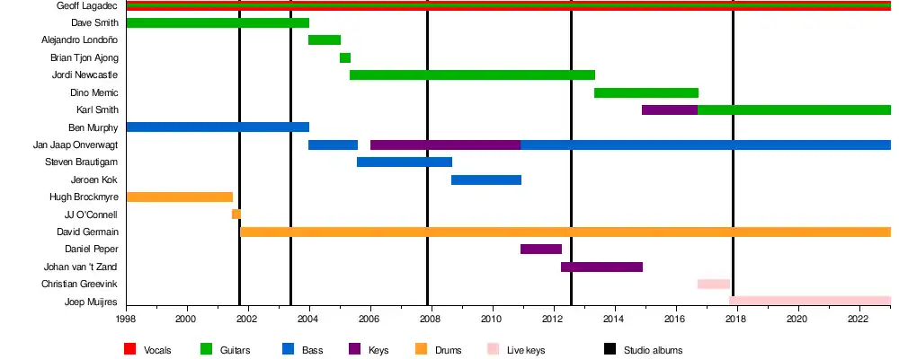 Past members | Ben Murphy Dave Smith Hugh Brockmyre JJ O'Connell Ausberto Acevedo Alejandro Londoño Brian Tjon Ajong Jordi Newcastle Steven Brautigam Jeroen Kok Daniel Peper Johan "Leon" van 't Zand Dino Memic |