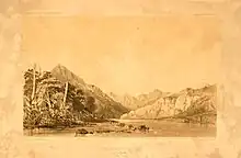 The fleet sailed down the coast of Patagonia in January 1696.[7] They entered the Strait on 11 February 1696 and reached Port Galant[lower-alpha 1], but were forced to return and reentered the Atlantic on 11 April 1696.[5] Gennes blamed the captain of the Séditieux for the failure to reach the Pacific.[8] Although expedition was unable to pass through to the Pacific due to the extreme cold and poor weather, it made a number of observations of the land and inhabitants of the region.[9]