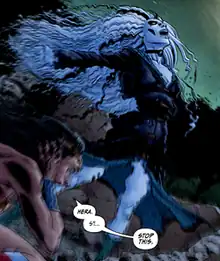 In her first appearance several centuries later, Jeannette is shown to run a casino in Las Vegas, Nevada.[2] Her status as a villain was not made explicit, but due to her apparent relationship with her soon-to-be teammate Scandal Savage, it is implied that she had engaged in some unsavory business prior to her introduction. Eventually, she is shown to have been detained in several prisons over the course of her long life for unspecified crimes.[3]