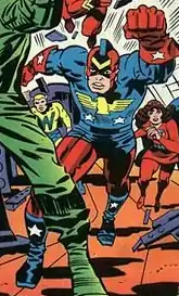 ![]() Detail from cover of Marvel Premiere #30 (June 1976). Jeffrey Mace as the Patriot. Art by Jack Kirby & Frank Giacoia | |