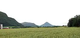 Jendemsfjellet is a mountain in Hustadvika Municipality in Møre og Romsdal county, Norway. The cone-shaped mountain is located just northeast of the villages of Jendem and Hollingen (on the municipal border with Aukra Municipality), southeast of the small island of Vågøya, and southwest of the village of Aureosen. The 633-metre (2,077 ft) mountain sits just east of Julsundet strait and south of Frænafjorden.[2]
