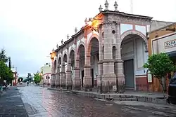 The Palacio Municipal (Municipal Palac) or town government building is housed in a former two-story mansion that was constructed between 1730 and 1745. The building features a Baroque facade made of sandstone. It underwent renovations in the last decades of the 20th century, but its original facade was meticulously preserved. Inside, there is a central courtyard surrounded by arches, and there are two stairwells connecting the floors. The main staircase is located on the east side, while the south staircase features a portrait of Francisco García Salinas.[2]