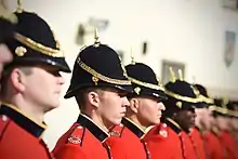 In 1831, the Militia was designated the Royal Jersey Militia on the 50th anniversary of this battle.[9]: 407 The facings on uniforms were changed from buff to blue.[3] In 1837 there were five regiments, formed into six battalions, each with a company of artillery. Every resident from 19 to 65 bears arms with 16- to 18-year-olds being trained weekly. The whole militia is unpaid.[9]: 407 The regiments were re-organized on several occasions between 1870, when the Troop of Dragoons was disbanded, and the end of the century.