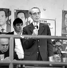 - ↑ The first Basque government had four members of the Partido Nacionalista Vasco (Basque Nationalist Party): Jose Antonio Aguirre (President and Defense), Jesús María de Leizaola (Justice and Culture), Eliodoro de la Torre (Finance) and Telesforo Monzón (Interior). There were three members of the Partido Socialista Obrero Español (Spanish Socialist Workers' Party): Santiago Aznar (Industry), Juan Gracia Colás (Welfare) and Juan de los Toyos (Labor). The other members were Gonzalo Nárdiz (Agriculture) of Acción Nacionalista Vasca (Basque Nationalist Action), Ramón María Aldasoro Galarza (Trade) of the Izquierda Republicana (Republican Left), Alfredo Espinosa (Health) of Unión Republicana (Republican Union) and Juan Astigarrabía (Public Works) of the Partido Comunista de España (Communist Party of Spain).[2]