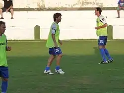 ![]() Mendoza (center) training with Xerez in 2009 | |||