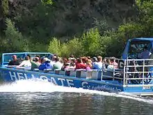 A jetboat is a boat propelled by a jet of water ejected from the back of the craft. Unlike a powerboat or motorboat that uses an external propeller in the water below or behind the boat, a jetboat draws the water from under the boat through an intake and into a pump-jet inside the boat, before expelling it through a nozzle at the stern.