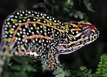 The jeweled chameleon (Furcifer campani), also commonly known as Campan's chameleon or the Madagascar forest chameleon, is a species of lizard in the family Chamaeleonidae. The species is endemic to the central highlands of Madagascar, where it is threatened by bush fires and habitat loss.