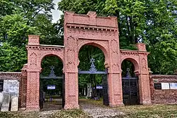 The Łódź Jewish Cemetery, also known as the New Jewish Cemetery, was once the largest Jewish cemetery in Poland and one of the largest in the world. Located in the city of Łódź on Bracka Street,[2] the necropolis was opened in 1892[3] and occupies around 44 hectares of land. The cemetery contains from 180,000 to 230,000[4] marked graves, as well as mass graves of victims of the Litzmannstadt Ghetto and the Holocaust. From 1893 to 1896, the basic construction of the necropolis was completed under the supervision of well-known architect Adolf Zeligson.[5][6]