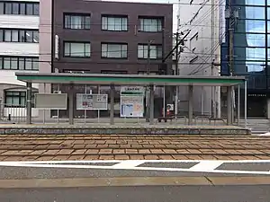 The station consists of two ground-level opposed side platforms connected by a level crossing. There is no station building, but rather two raised platforms in the median of Phoenix-dōri (Prefectural Route 30) from which customers board and disembark.