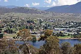 Originally situated on land that is now under Lake Jindabyne, the township was transferred to its present location in the 1960s due to the construction of Jindabyne Dam, on the Snowy River, as part of the Snowy Mountains Scheme. At the 2016 census, Jindabyne had a population of 2,629 people.[1] The town's name is derived from an Aboriginal word meaning "valley".[2]