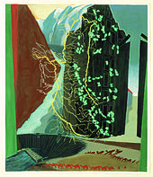 In 1977 Baer had a one-person exhibition at the Museum of Modern Art, Oxford, and during the course of it she met the British artist Bruce Robbins. The two lived and worked together from 1978 to 1984, first in Ireland and then from 1982 to 1984 in London, creating paintings, drawings, and texts. Their collaborations were shown in eight two-person exhibitions.[22] While in London, Baer wrote one of her best-known articles, "I am no longer an abstract artist," a manifesto published in Art in America in October 1983.[23] Baer chronicled "abstraction's demise," and in characterizing its meaninglessness in a vastly changed world, claimed openness, ambiguity, "metaphor, symbolism, and hierarchical relationships" as necessary building blocks of modern works. Baer announced that she and Robbins were working toward a "radical figuration" based on those constructs.