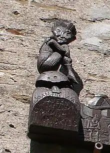 Joan the Wad is often depicted naked and associated with fire and water elements.[1] In the last century, there was a thriving cottage industry in Joan the Wad lucky charms.[1] People carried small figures of Joan the Wad for good luck: a small collection of such antique figures is housed at the Museum of Witchcraft in Boscastle.[6] Her image also appears on door knockers to serve as a protective spirit.[1]