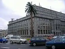 Greetings from Jerusalem Avenue – the 15-meter (50-foot) tall artificial palm tree installed in the centre of Warsaw – an installation created by Rajkowska after her trip with Artur Żmijewski to Israel in the spring of 2001. It is an attempt to infuse with Israel's scenery Warsaw's Jerusalem Avenue – a street whose name and history, in return, sends the observer back to Israel. In another way, the palm tree refers to a popular idiomatic expression in the Polish language (Polish: palma odbija – literally: "the palm tree sprouts/bounces back") that indicates something unthinkable, outside common understanding, escaping the usual way of reasoning, simply – something idiotic. On the other hand, through the very presence of the palm tree in the middle of Warsaw's centre, it may signify that the commonly accepted way of reasoning does not fit the real world.[2]