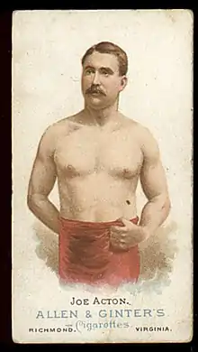 Acton would also face Australian bare-knuckle boxer William Miller in a series of wrestling matches in Philadelphia, Pennsylvania between March and July 1888[6] as well as Bob Fitzsimmons in 1891.[7][8]