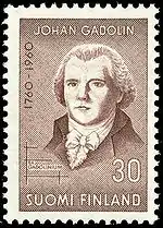 Johan Gadolin (5 June 1760 – 15 August 1852)[1] was a Finnish chemist, physicist and mineralogist. Gadolin discovered a "new earth" containing the first rare-earth compound yttrium, which was later determined to be a chemical element. He is also considered the founder of Finnish chemistry research, as the second holder of the Chair of Chemistry at the Royal Academy of Turku (or Åbo Kungliga Akademi). Gadolin was ennobled for his achievements and awarded the Order of Saint Vladimir and the Order of Saint Anna.