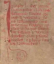 Johannes was called Hispanus, meaning a native of the Iberian Peninsula.[2] He was born in Silves during the brief period when it was held by King Sancho I of Portugal between 1189 and 1191.[3] He refers to himself as a priest, and seems to have been ordained in Lisbon before studying at the University of Bologna.[4] He studied canon law and possibly civil law at Bologna from 1223 until 1229.[3][4] His main teacher was the archpriest Zoen.[5] He was a professor at Bologna from 1229 until at least 1255.[6] He appears to have been a doctor of both laws.[7] The titles he uses of himself are doctor decretorum (doctor of decrees) and utriusque juris professor (professor of both laws).[2]