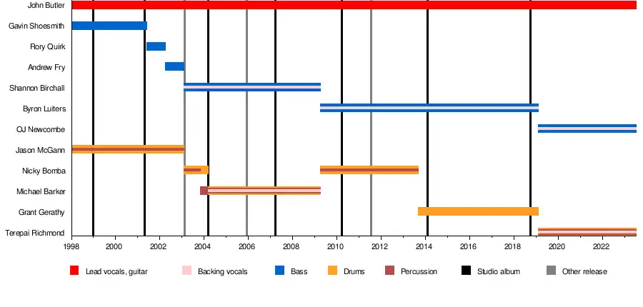 - Terepai Richmond – drums, percussion, backing vocals (2019–present)