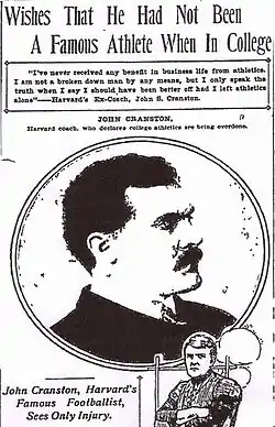 - ↑ John S. Cranston (1905-06-22). "Wishes That He Had Not Been a Famous Athlete When in College". The Boston Journal.