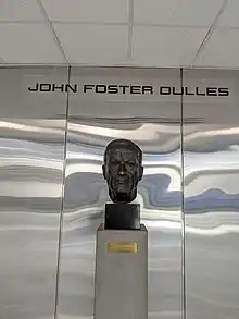 The Washington Dulles International Airport in Dulles, Virginia and John Foster Dulles High, Middle, and Elementary Schools in Sugar Land, Texas (including the street (Dulles Avenue) where the school campuses are located), were named in his honor, as is John Foster Dulles Elementary School in Cincinnati, Ohio, and a school in Chicago, Illinois.[47] New York named the Dulles State Office Building in Watertown, New York in his honor. In 1960 the U.S. Post Office Department issued a commemorative stamp honoring Dulles. At Princeton University, Dulles's alma mater, a section of Firestone Library is dedicated to Dulles, named the John Foster Dulles Library of Diplomatic History, which houses, among many American diplomatic documents and books, the personal documents of John Foster Dulles. The library was built in 1962.[48]
