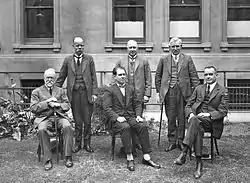 As Premier, Gunn established the State Bank of South Australia and developed Colonel Light Gardens, one of Australia's first planned suburbs. He also improved public service working conditions, built more roads and encouraged rural settlement.[3] A "Thousand Homes Scheme" was carried out to improve the quality and supply of housing for needy families, spending on education was increased, provided better medical facilities and new junior technical schools, higher wages for teachers, and more scholarships. Working conditions were also improved, while measures were undertaken to improve conditions in rural areas "with a visionary afforestation programme in addition to better roads and improvements in access to bore water and technical expertise in agriculture."[4] His reforms impressed many and even received grudging praise from the previously hostile media, who realised he had mellowed into a more moderate figure than the strike leader 15 years previously.