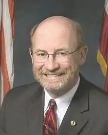 John Laird (born March 29, 1950), an American politician, is the California State Senator for District 17, since 7 December 2020,[4][5][6] and was Secretary of the California Natural Resources Agency[7] from 2011 to 2019 and a former legislator who represented the 27th district in the California State Assembly until 2008. The 27th district included parts of Santa Clara County, Santa Cruz County and Monterey County. Laird (along with Mark Leno) was one of the first two openly gay men to serve in the California legislature. Laird became one of the United States' first openly gay mayors in 1983 when he took over the mayoralty of the city of Santa Cruz, California.[8]