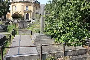 Lord Leven died on 16 September 1876 and was succeeded in the earldoms by his eldest surviving son, Alexander. He is buried with his second wife Sophia on the south side of the southern roundel in Brompton Cemetery in London.[4]