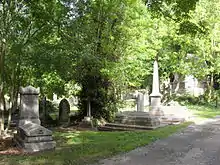Goulty also one of the four founders of the Extra Mural Cemetery in Brighton.[3] In 1850, in response to a Government health inspector's critical report about sanitary conditions and public health in Brighton—which recommended that burials in churchyards and chapel burial grounds should cease—the doctor and political John Cordy Burrows, architect Amon Henry Wilds, Goulty and his son Horatio Nelson Goulty established the Brighton Extra Mural Company, acquired 13 acres (5.3 ha) of land near Race Hill, and laid out a private cemetery for Anglican, Roman Catholic and Nonconformist burials.[21]