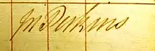 ![]() Signature of Captain John Perkins from the Logbook of HMS Arab 1800, held at The National Archives, Kew, London | |