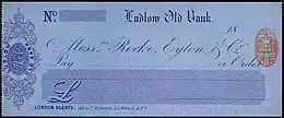 The bank operated under a lot of different names: Ludlow Old Bank (see the image), Shrewsbury and Ludlow Bank (ibid),[9] Eyton, Reynolds & Bishop, Rocke, Eyton & Campbell, Rocke, Eyton, Loxdale, Campbell & Bayley , Rocke, Eyton, Campbell & Bayleys and Salop Old Bank.[10]