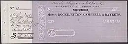 See also: "Shrewsbury & Ludlow Bank (Rocke, Eyton, Campbell & Bayley) bank note". Spink. Archived from the original on 2023-10-22. Retrieved 2023-10-22. On this page an issue of Rocke, Eyton, Campbell & Bayley is shown. - ↑ "Rocke Street". Archived from the original on 2023-06-26. Retrieved 2023-10-22. This site gives 1795 as the year of founding of the bank.