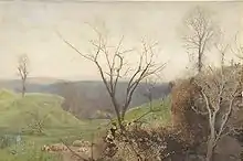 The term "idyllist" is more properly applied to North's earlier black and white landscapes, which were driven by the necessity to illustrate a particular literary narrative. His later watercolour work was certainly not idyllist in the nostalgic, "chocolate-box art" sense of the word, but attempted to evoke a sense of spiritual communion with nature. In this North owed a lot to his friend Richard Jefferies, and biographer Herbert Alexander noted that North had to be in the right state of mind before he would start a painting.[3][4]
