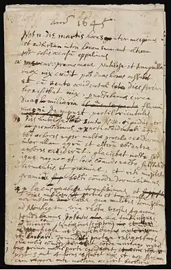 First page of a diary kept by Winthrop of his journey from Boston to Saybrook, Connecticut, in 1645