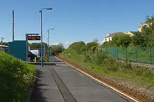 Milford passengers would here make a connection to services eastwards to Haverfordwest and beyond.[3] A station building was situated on the upside, and a waiting shelter on the downside. A pedestrian bridge connected the two platforms. A goods shed survived until the 1930s.[3]