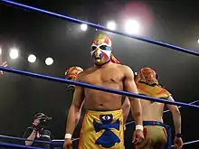 Gresham made his Chikara debut in 2010 teaming with The Osirian Portal and defeating Bruderschaft des Kreuzes (Lince Dorado, Delirious and Pinkie Sanchez).[41][42] In January 2011, Gresham now as Hieracon and now part of the Osirian Portal stable defeated Team F.I.S.T (Johnny Gargano, Icarus and Chuck Taylor).[43] The group disbanded after Amasis retired.[44] Ophidian attacked Amasis and unmasked him, turning rudo (heel).[45] Gresham's last match in Chikara was a loss to Ophidian. After the match Ophidian took Hieracon's mask.[46]