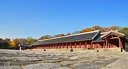 Jongmyo (Korean: 종묘) is a Confucian shrine in the Jongno District of Seoul, South Korea. It was originally built during the Joseon period (1392–1897) for memorial services for deceased kings and queens. According to UNESCO, the shrine is the oldest royal Confucian shrine preserved and the ritual ceremonies continue a tradition established in the 14th century. Such shrines existed during the Three Kingdoms of Korea period (57–668), but these have not survived. The Jongmyo Shrine was added to the UNESCO World Heritage list in 1995.[1]