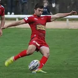 After being awarded with a development contract for the 2012–13 season, Williams made his first league start for the Scarlets as a full-back away to Connacht on 15 September 2012, scoring two tries and a conversion on the way to a 24–11 victory and the man of the match award.[10] After missing the team's next game against the Ospreys, he returned to the side for a 22–20 defeat away to Benetton Treviso; Williams was at fault for Treviso's third try of the game, as his kick was charged down and run in by Robert Barbieri.[11] That was his last appearance for the Scarlets for almost a year. Things got worse for Williams in October 2012, when he suffered a dislocated shoulder while playing for Llanelli in a 38–28 victory over Gala RFC in the British and Irish Cup, which kept him out for four months.[1] After his recovery, he returned to the fly-half position for all eight of Llanelli's remaining Premiership games for which he was available, including the 47–15 loss to Pontypridd in the play-off final.[12]