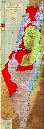 Prior to hostilities in 1948, Palestine (modern-day West Bank, Gaza Strip and Israel) had been administered by the British Empire pursuant to the Mandate for Palestine, having captured it from the Ottomans in 1917. The British, as custodians of the land, implemented the land tenure laws in Palestine, which it had inherited from the Ottomans (as defined in the Ottoman Land Code of 1858), applying these laws to both Arab and Jewish tenants, legal or otherwise.[14] Toward the expiration of the British Mandate, Arabs aspired to independence and self-determination, as did the Jews of the country.[15]