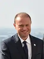 Muscat was re-elected as prime minister in the elections of 3 June 2017 (55.04% after 54.83% in 2013).[5] Previously he was a member of the European Parliament (MEP) from 2004 to 2008.[6] He was the leader of the opposition from October 2008 to March 2013.[7] Muscat identifies as a progressive and liberal politician, with pro-business leanings,[8] and has been associated with both economically liberal and socially liberal policies.[9]