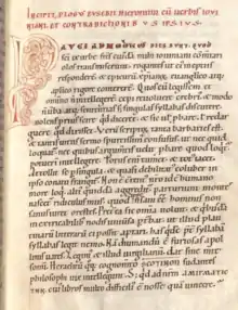 Jovinian (Latin: Iovinianus; died c. 405) was an opponent of Christian asceticism in the 4th century and was condemned as a heretic at synods convened in Rome under Pope Siricius and in Milan by Ambrose in 393 because of his views.[1] Our information about him is derived principally from the work of Jerome in two books, Adversus Jovinianum.[2] Jerome referred to him as the "Epicurus of Christianity".[2] He was a native of Corduene, in present day Turkey.[3] John Henry Newman called Aerius of Sebaste, Jovinian and Vigilantius the forerunners of Protestantism, likening them to the "Luther, Calvin, and Zwingli of the fourth century".[4] Other Protestants also praise Jovinian as an early reformer or even credit him as the "first Protestant".[5][6] Jovinian's teachings received much popular support in Rome and Milan and his followers Sarmatio and Barbatianus kept preaching his ideas after Jovinian was expelled.[7][8][9]
