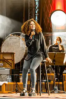 German recording artist Joy Denalane has released five studio albums, two live albums, and 17 singles, plus six singles as a featured artist. Denalane scored her first chart entry in 1999, when she was featured on hip hop group Freundeskreis's single "Mit dir", a duet with future husband Max Herre, that became a top ten hit in Germany.[1] Its success led to a recording deal with the Four Music label, which released her debut album Mamani in 2001. A soul album with elements of neo soul, jazz, and afro pop, it reached number eight on the German Albums Chart and earned a gold certification from the Bundesverband Musikindustrie (BVMI).[1] It produced five singles and spawned the live album Mamani Live, which was released in 2004.[1]