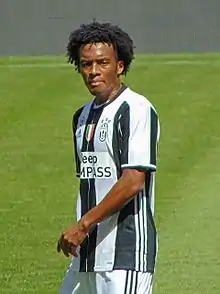 Juan Guillermo Cuadrado Bello (born 26 May 1988) is a Colombian professional footballer who plays for Serie A club Inter Milan and the Colombia national team.[4][5] He usually plays on the right side of the pitch, either as a winger, full-back or wing-back.[6] He is known for his direct style of play, including his pace (both on and off the ball) as well as his dribbling skills.
