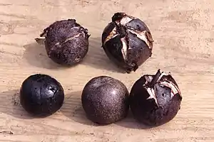 - ↑ "紫京核桃十分稀有 年产量只有十几个". Beijing Television. 30 September 2017.