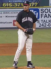 ![]() Thompson pitching for the Oklahoma RedHawks in 2005 | |