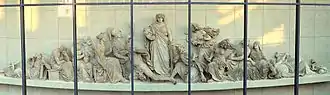 The Dresden court councillor Wilhelm Lesky built his Villa estate in Kötzschenbroda on the remains of the burnt-down first Semper's Opera House as a picturesque arrangement of ruins. These spolias are no longer preserved today. In contrast, the so-called Rietschelgiebel, which can be seen today at the Burgtheater on the Ortenburg in Bautzen, has been preserved. This group of figures created by Ernst Rietschel with the title "Allegory of Tragedy" was originally installed on the north wall of the Dresden Court Theatre, but had no longer found a use when the opera house was rebuilt.