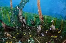 A large room on the first floor is reserved for the collection of natural history. A total of 102 species native to the region, including 76 taxidermized bird and mammal species,[2] are on display in their natural environment. Some of the animals exhibited are extinct and some are endangered species. This section draws the interest of high school students, university biology students, and researchers.[1][2]