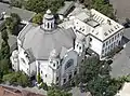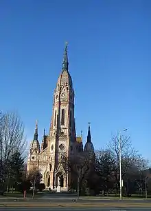 The centre of Kőbánya has a beautiful Catholic church built 1891–97 in eclectic-Art Nouveau style, dedicated to knight-king St. Ladislaus. It was designed by Ödön Lechner and a statue of the architect with a model of the church has been erected outside. The church has a very tall bell-tower and the church's roof is covered in patented colorful Zsolnay "eozenic" porcelain tiles which were designed by Ignatz Oppenheimer. Next to it lies the "Pataky" culture centre and library, and Szent László Gimnázium, the secondary school, also dedicated to King Ladislaus. It specializes in biology and languages (especially Italian). Many elementary schools in Kőbánya have been closed in recent years due to dwindling birthrate. On the opposite side of the church the "Mázsa tér" square is set to become a small high-rise are with six 60-meter tall apartment towers. The Budapest general assembly or the Ferihegy airport authorities are considering blocking this ambitious plan.