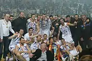 In the 2016–17 season, MZT Skopje applied for participation in the Eurocup for the second time in the last four years. Emil Rajković was appointed as new head coach. After a few games, the coach position was taken up by former assistant Aleksandar Jončevski, but the season ended with Croatian coach Ante Nazor on the bench. The Eurocup campaign ended without a victory out of ten games. In the ABA League, the team defeated Krka in the decisive match in the last part of the season and was thus saved from relegation, finishing in 13th position.[11] The team won their sixth consecutive league title against Karpoš Sokoli 3–2 in the final. Charlon Kloof was MVP of the finals.[12]