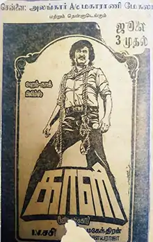 Kaali is a 1980 Indian action film written by Mahendran and directed by I. V. Sasi. Produced by Hem-Nag,[1] the film stars Rajinikanth, Seema, Fatafat Jayalaxmi and Shubha.[2][3] The film was simultaneously made in Tamil and Telugu languages, with Chiranjeevi replacing Vijayakumar in Telugu.[4] The cinematography was handled by Ashok Kumar and soundtrack was composed by Ilaiyaraaja.[5] Kaali ran for less than 50 days in Chennai and was considered a box office failure in both Tamil and Telugu.[6]