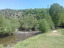 Kadina River (Macedonian: Кадина Река, Albanian: Lumi i Kadinës) is a mountain river in the Republic of North Macedonia and right-side tributary of the Vardar.[1] It is 34 kilometres (21 mi) long and drains an area of 184 square kilometres (71 sq mi). Its source is at 41°45′33″N 21°22′37″E / 41.7591°N 21.3770°E in Studeničani Municipality several kilometres upstream from Aldinci village. Thence it flows generally eastwards between the Golešnica and Kitka mountains within the Jakupica mountain ranges southeast of the city of Skopje and northwest of the city of Veles. The river empties into the Vardar near Smesnica.